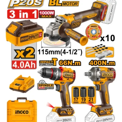 Combo Ingco 3 Herramientas Amoladora, Llave de Impacto y Taladro Percutor 20V COSLI241291-4
